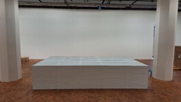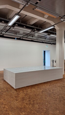 Quader aus 500 Bilderrahmen je 50 x 70 cm im Projektraum der SGK