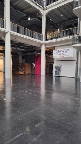 Die Absage meiner Ausstellung turn in der Städtischen Galerie Karlsruhe im Rahmen des Hanna-Nagel-Preises 2025 bedauere ich sehr. Zugleich fühle ich mich außerordentlich beschenkt und möchte mich an dieser Stelle für all die Unterstützung, die ich erfahren durfte, ganz herzlich bedanken. Danken möchte ich zunächst den Karlsruher Präsidentinnen, die den Preis gestiftet haben, sowie Luisa Heese, stellvertretende Direktorin der Kunsthalle Mannheim, sowohl für den Katalogtext als auch für die Einführung, die sie gehalten hätte. Dank der freundlichen Förderung der Stiftung Landesbank Baden-Württemberg (LBBW) war es mir überhaupt möglich mein Ausstellungsvorhaben zu realisieren, dafür bin ich sehr dankbar! Mein herzlicher Dank gilt ebenso allen, die mir ohne zu zögern Unterstützung boten: Peter Wieland, Geschäftsführer der Adam Wieland GmbH & Co. KG, der mir acht Tischplatten und Gestelle anliefern ließ; Thomas Gerber, Geschäftsführer der Wilde + Spieth Designmöbel GmbH & Co. KG, der mir für die Ausstellung 32 Stühle sandte; Christian Schmuck von Prisma Fine Art Services UG für seine Zusage, das Art Handling am Eröffnungsabend zu sponsern; VAN HAM Kunstauktionen, namentlich Marion Scharmann, die am 22. Februar 2026, am letzten Tag der Ausstellung um 14 Uhr, in meiner Installation eine Auktion durchgeführt hätte und mich in der Vorbereitung beraten hat, sowie weiteren Menschen und Unternehmen, die Sachspenden gemacht haben, ohne genannt werden zu wollen und sich lediglich über Fotos von der Ausstellung gefreut hätten. Nicht zuletzt danke ich den Menschen, die mir nahe sind und die mich durch die Vorbereitungszeit, die vom 12. März bis zum 24. November 2025 dauerte, begleitet und unterstützt haben.