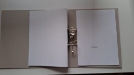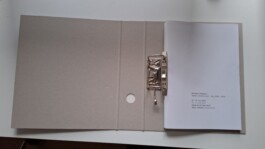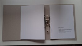Katalog: Die Form folgt meiner Beschäftigung mit der Ausstellung als Medium. Der Ordner steht für den Raum und die einzelnen Ringösenbroschüren, die jeweils ein Projekt vorstellen, für die einzlenen Arbeiten, die flexibel in den Ordner gehängt werden können.
