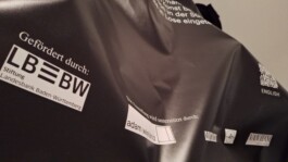Detail des bereits gedruckten Banners mit dem Text, der an die Wand hinter der Installation in der HfG angebracht worden wäre