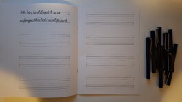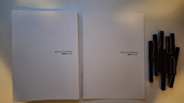 Die gedruckten Schönschreibhefte, die die Besucher:innen hätten ausfüllen können, um dann vom Art Handling gerahmt und an die Wand des Projektraums der SGK gehängt zu werden.