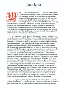 In der Ausstellung Little Forest zeigte Marleine Chedraoui künstlerische Positionen, die in der Gattung der Bildhauerei arbeiten. In Little Forest präsentierte sie Arbeiten von John Bock, Björn Braun, Sofia Hultén und Michael E. Smith.