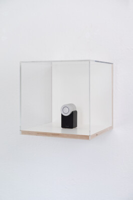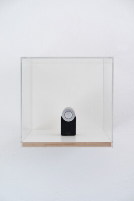 Relics Of The Unrealised Come In And Find Out verweist auf das nicht realisierte Konzept. Sie besteht aus einem elektronischen Türschloss mit Smartphone-Erkennung, das in einer Vitrine mit Glashaube präsentiert ist.