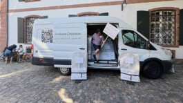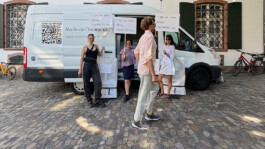 Eine der Künstler:innen postierte sich im Gebäude, während sich die anderen entlang der Rittergasse verteilten. Auch Marleine Chedraoui war in der Rittergasse positioniert, in der Nähe eines Transporters, der als multifunktionaler Raum diente. Auf den drei Seiten des Fahrzeugs waren der Name der Künstlerin, der Titel und das Entstehungsjahr des Werkes sowie ihr Instagram-Profilname zu sehen. Ein QR-Code leitete zu weiteren Informationen auf Chedraouis Webseite.